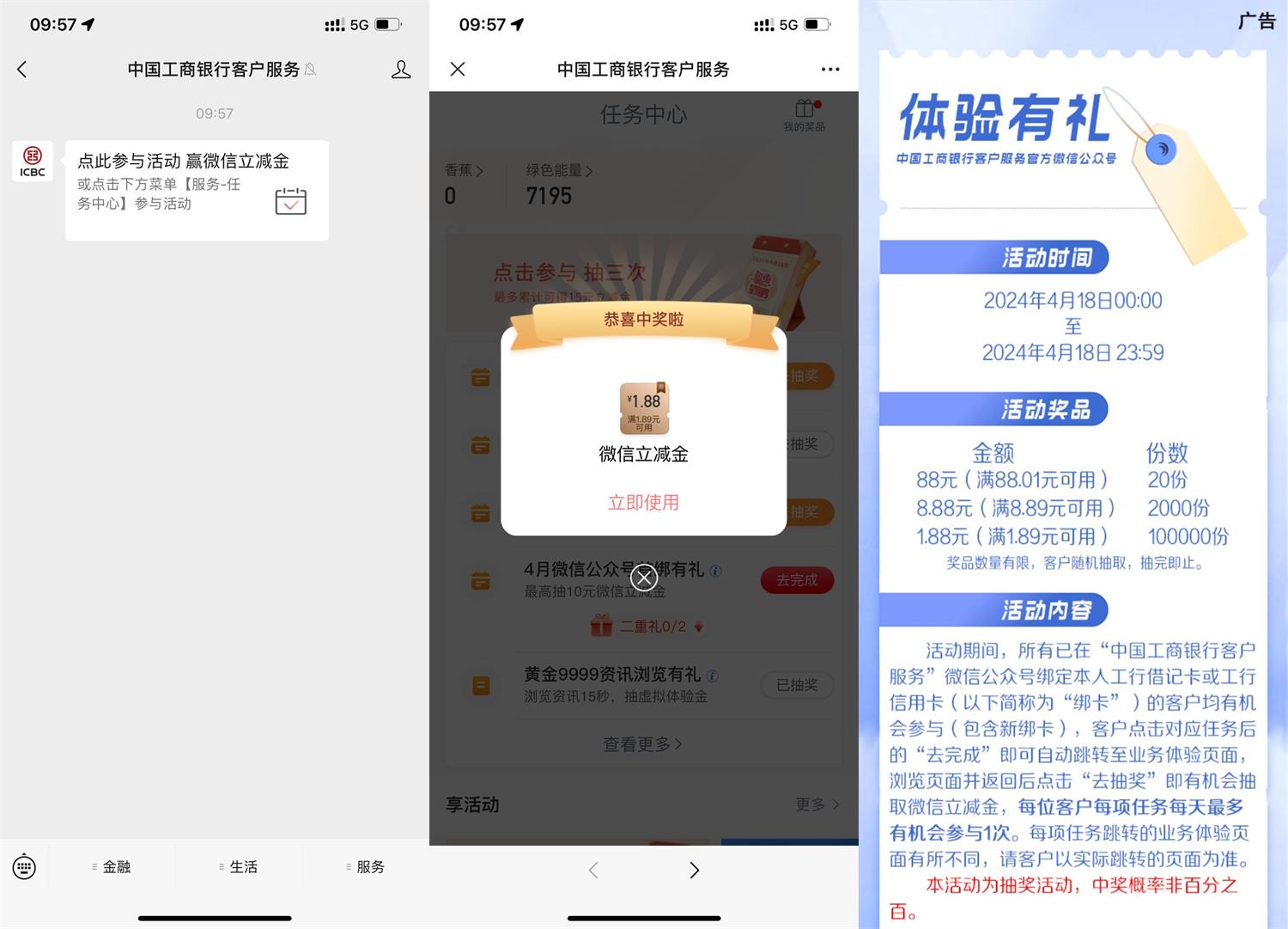建行APP->我的->任务中心->部分人弹出惊喜盲盒,有5亓立减金