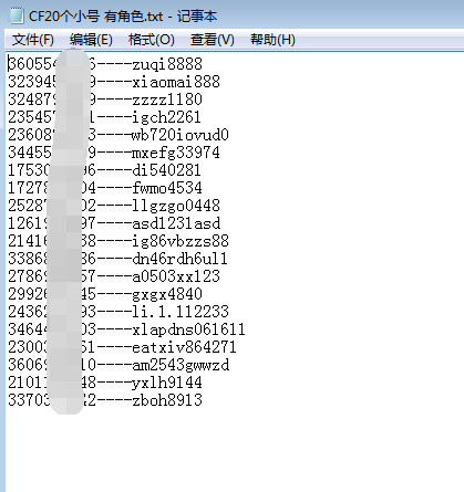 QQ小号 CF20个临时小号分享 有角色 无需实名