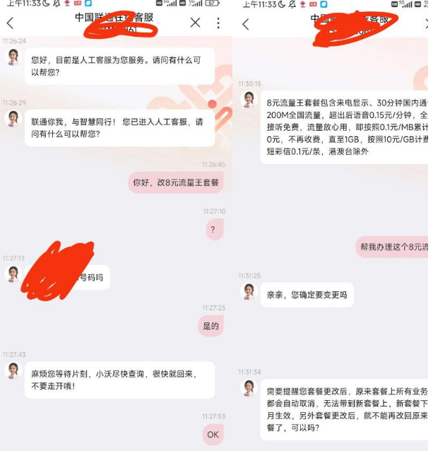 移动联通目前是8元,电信是5元。接通后不要问能改什么套餐,