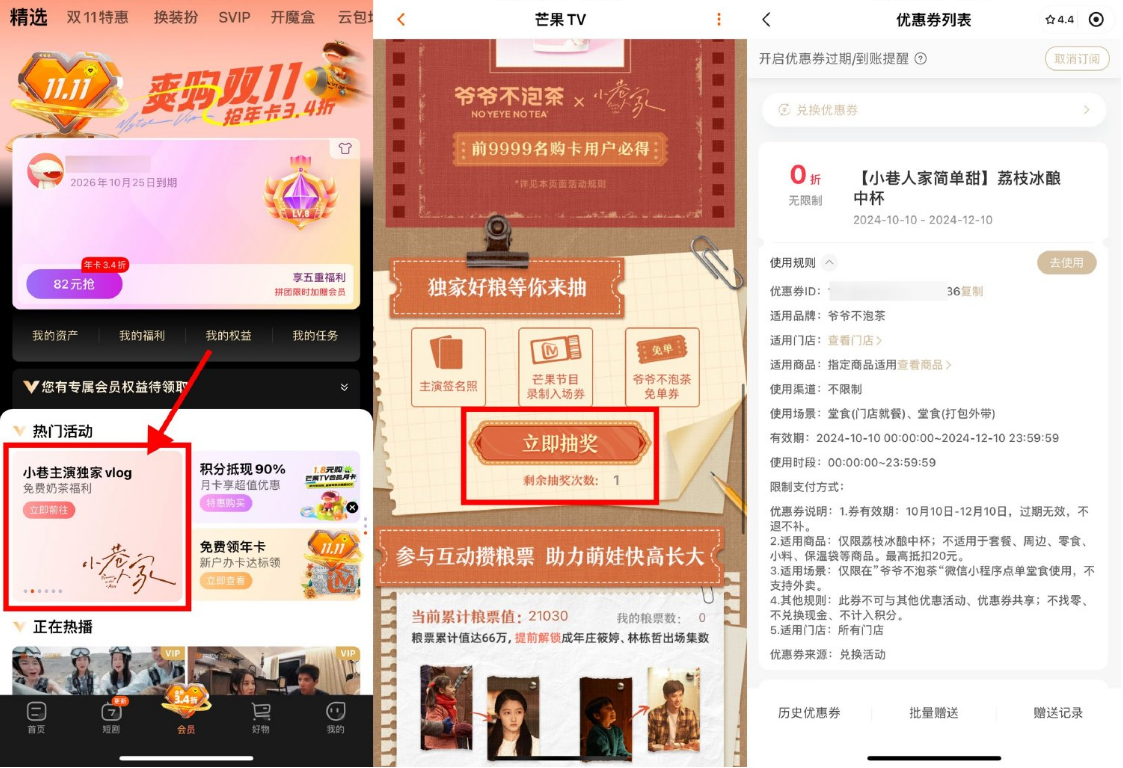 淘宝APP扫码->下拉刷新3次,直接领1元天猫超市卡